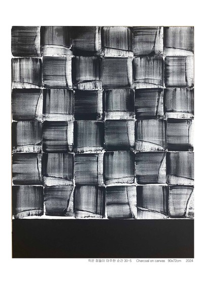 4차원에서 모든 변의 길이가 같은 도형을 하이퍼큐브(Hypercube)라고 한다. 4차원의 하이퍼큐브는 3차원 공간에서 푸앵카레의 정리를 만족하면서 다양한 형태의 3차원 입체 그림자가 될 수 있는데 그 중 한 형태를 모티브로 모스부호를 사용하여 성경말씀을 표현했다 (참고로 푸앵카레의 정리: N차원 공간에서 점-선+면-입체+초입체=1로 항상 일정하다) (The Bible No.18) 사도행전 16장 31절 말씀 중 주 예수를 믿으라 Believe in the Lord Jesus [The Bible series] ‘그림으로 성경말씀을 온전히 표현할 수 있을까...’ 하는 질문에서 시작하여 영문성경말씀 그대로를 2진법, 모스부호, 색, 패턴 등으로 나타내는 작업을 계속하고 있습니다.