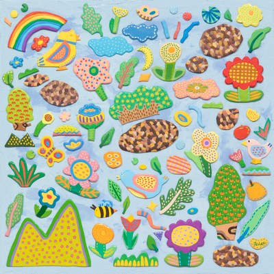 요지경 bizarre world <대한민국통일명인미술대전 특선작> 순지에 혼합재료 이작품은 작품의 중심에 강렬한 색감으로 표현된 호랑이와 까치가 자리 잡고 있습니다. 호랑이는 용맹과 권위를 상징하며, 까치는 길조와 소식을 전하는 존재로 여겨지는데, 두 요소는 민화에서 흔히 등장하는 조합으로 익숙하면서도 상징적인 의미를 지닙니다. 작품의 양옆에는 모래시계를 연상시키는 자개 패턴이 묘사되어 있습니다. 이 패턴은 시간이 흘러가는 과정을 나타내며, 과거와 현재, 그리고 미래를 연결하는 상징적 요소로 작용합니다. 자개의 빛나는 질감과 독특한 표현 기법은 전통적인 아름다움과 현대적 감각이 조화를 이루는 모습을 보여줍니다. 배경에는 다채로운 색채와 기하학적인 패턴이 어우러져 작품에 활기를 불어넣고, 각 요소들이 서로 연결되면서 이야기의 흐름을 형성합니다. 특히 기어와 꽃 같은 패턴은 현대적인 시간성과 자연의 조화를 강조하며, 과거에서 미래로 이어지는 시간을 이야기 속에서 시각적으로 구현하고자 한 의도를 담고 있습니다. This artwork places a tiger and a magpie, rendered in vivid and striking colors, at its center. The tiger symbolizes bravery and authority, while the magpie is regarded as a harbinger of good fortune and news. These elements, commonly seen in Korean folk paintings, are both familiar and deeply symbolic. On either side of the artwork, patterns reminiscent of hourglasses are depicted with mother-of-pearl designs. These patterns represent the passage of time, connecting the past, present, and future. The shimmering texture and unique expression of the mother-of-pearl convey a harmony between traditional beauty and modern sensibility. The background features a blend of vibrant colors and geometric patterns, infusing energy into the piece. The interconnected elements create a narrative flow throughout the artwork. Notably, patterns resembling gears and flowers highlight a harmony between modern concepts of time and nature, visually embodying the transition from the past to the future within the story. #민화 #한국화 #동양화 #수상작