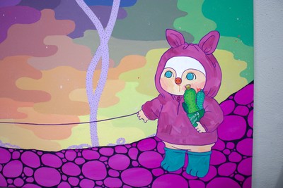보라색은 선명하게 파랗거나 붉지 않은, 그 사이의 색으로 여러 의미를 담아낼 수 있다. 또한 보라색은 겉으로 화려해 보여도 속으로는 꿈꾸듯 보드랍고, 고귀한 감성적 느낌 속에서도 우울함과 외로움을 상징한다. 이우현의 작품은 보랏빛 한 색으로만 뚜렷한 경계 없이 모호한 형체로 풍경을 담고 있다. 하지만 여러 겹 채워진 면들이 깊고 무게감 있는 덩어리처럼 표현되며 높은 밀도감을 느끼게 한다. 특히 이우현의 보랏빛 풍경의 작품은 해가 진 후이자 해가 뜨기 전 새벽 풍경 속에서 관람객으로 하여금 바쁜 일상 중에 잠시나마 휴식을 취할 수 있게 '쉼'이라는 기운을 준다.