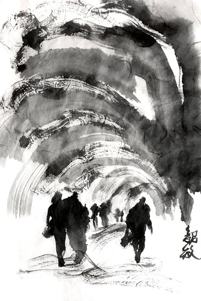 죽음은 새 삶의 전야제다. 그에 장례는 어쩌면 그간의 노고를 위로하고 앞으로의 모험을 응원하는 값진 이벤트다. 그렇다고 죽음을 지향하자는 것은 아니다. 우리 인간은, 아니 모든 생명은 죽음을 ‘지양’하는 성래가 있기에, 영원을 꿈꾸기에, 무한히 번식하고 번영하고 서로를 계몽한다. 인간은 죽음을 지양하지만 죽음은 모든 생명을 사랑한다. 그래서 우리의 성장을 응원하며 가장 나중에 우리에게 온다. 지금은 이 삶 직전의 일은 내 기억에 없지만 아마 태어났을 때, 그리고 말을 할 줄 알기 전까지는 기억하고 있었을지도 모른다. 입이 트이면 발설할 수 있으니 아마 그즈음 기억은 부러 서서히 사라져 갔을 수도. 원래 ‘핵심’이란 건 평생 쓰일 수 없는 것이어서, 뭘 잘 모르는 가장 처음에, 그리고 더 이상 쓸모없게 될 가장 나중에 다가오는 것. 지금까지의 삶을 톺아보면 원하지 않지만 맞이해야 하는 순간들이 나를 문턱에 서게 하고 문턱을 넘어가게 하였다. 내가 원했던 것은 항상 원치 않았던 것을 뚫고 해쳐 나왔을 때 그곳에 있었다. 원하는 것은 원치 않는 것을 앞세워 나에게로 온다. 따라서, 내게 오는 것은 그게 무엇이든 희망이고 유쾌함이라. 제 딴에 슬픔인 척, 위기인 척, 고통인 척 해도 나는 그것이 즐거움의 노림수란 걸 익히 알고 있다. 이것은 결코 그 ‘핵심’이란 것은 아니겠지만, 그것을 얻으려 발버둥 치는 중에 오는 힌트이고 단물일 것. 이거라도 감사히 받들어 나아가자. 그러다 어느덧, 나도 모두처럼 그렇게도 지양해 오던 죽음 앞에서 가장 깊어지겠제. #방석영 #방석영작가 #방석영씨어터 #bangtheater #bangseokyeong #韶效 #일러스트 #illustration #painting #inkdrawing #writer #탄생 #birth #터널 #tunnel #오후의달 #afternoonmoon