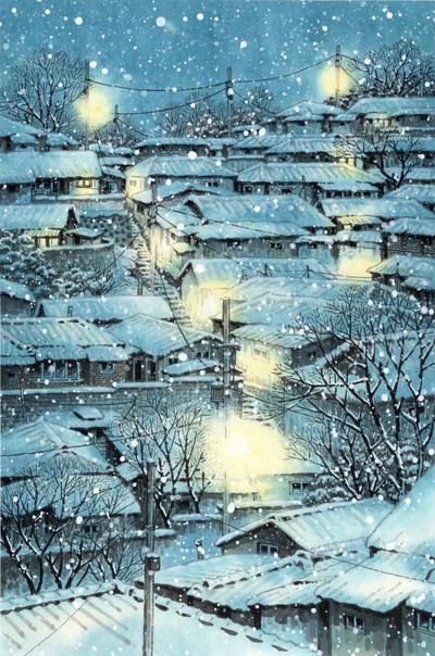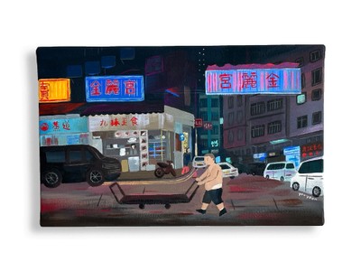 서기영문(瑞氣盈門) “상서로운 기운이 문 앞에 가득하다.” 핑크빛 바탕 위로 노란 기운이 은은히 스며들며, 노을이 지기 시작할 때 생겨나는 윤슬처럼 살구빛의 온기가 화면 위에 펼쳐집니다. 겹겹이 쌓인 색의 결은 가볍게 흔들리는 빛처럼 번져, 공간에 부드러운 숨결을 남깁니다. 달항아리는 그 온기를 고요히 품은 채 자리하고, 그 위를 나는 두 마리 학은 장수와 길상의 상징으로서 잔잔한 생명력을 더합니다. 문 앞에 가득 찬 이 살구빛의 기운은 하루의 시작과 끝마다 스며들어, 삶에 부드러운 복과 안녕이 머물길 바라는 마음을 전합니다. 15호 (65.1 x 53 cm) 2025년