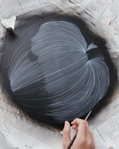<형상의 달(形象之月)>🌕 나는 오래전 자갈치 시장에서 만난 여인들에게서 삶이 얼마나 강렬하고 생동감 있게 피어나는지를 처음 보았다. 그녀들의 모습에는 시간을 지나오며 축적된 생의 힘이 고요하지만 강하게 빛나고 있었다. 나는 긴 시간 그 삶에서 피어난 ‘형상’을 그려왔다. 그것은 인물의 초상이 아니라 시간이 쌓여 만들어낸 생의 온기였다. 달항아리를 마주했을 때, 그 형상은 내게 달처럼 느껴졌다. 항상 떠 있지만 때마다 모습이 달라지고, 보이지 않아도 빛을 머금고 존재하는 달처럼, 삶의 형상도 그렇게 조용히 발현된다. 그래서 이제 여인의 형상은 내게 삶이 만들어낸 “형상의 달”이다. 삶이라는 시간 속에서 자연스럽게 떠오른 빛, 지나간 것이 아니라 지금도 이어지고 있는 에너지. 그 달을 달항아리 속에 담는 것은 삶의 에너지를 복의 공간으로 옮기는 일이다. 달항아리라는 또 하나의 달 속에서 삶의 형상은 다시 빛을 띠며 하나의 순환을 완성한다. 2025년 20호 (72.7 × 60.6 cm)