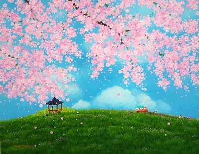 몽환적 리얼리즘(Dreamlike Realism)을 통한 시각적 치유공간 김명진 작가의 작품은 회화와 일러스트레이션을 융합하여 인간 내면의 정서와 일상의 경험을 시각화 하는 예술 세계를 구축하고 있다. 그녀의 독창적인 스타일 Dreamlike Realism은 단순한 정적인 이미지가 아니라, 현실과 상상의 경계를 넘나들며, 인간의 감정을 담아 움직이는 듯한 에너지를 전달하는 ‘시각적 시詩’ 라 할 수 있다. 자연과 감정의 흐름을 탐구하는 그녀의 작업은 동양적 서정성과 현대적 조형미의 조화를 기반으로 전통적 미학과 현대적 감각이 공존하는 공간을 형성하는, 몽유산수과 달의정원으로 표현되고 있다. 달의 정원은 고요한 쉼과 위로의 공간으로 달은 단순히 배경의 역할이 아니라 복잡한 감정을 담아내는 요소로 상처받은 감정을 치유하고, 무의식의 세계를 비추는 빛의 매개체이다. 정원은 마음의 공간이며, 그곳에 있는 소녀와 동물들은 감정의 은유이자 우리 모두의 내면을 상징한다고 할 수 있다. 여백의 미를 활용하여 감정의 흐름을 자연스럽게 전달하고, 동양의 정서적 깊이와 철학적 사유를 담고자 했다. 몽유산수는 산수화 형식을 현대적으로 재해석한 작품으로 동양의 미학과 현대적 감성을 결합한 독창적인 세계를 제시한다. 몽유산수는 현실 세계를 초월한 상상 속의 이상향을 표현한 것으로 자연의 아름다움 속에서 인간의 감정과 내면을 조화롭게 표현하여, 관람자에게 깊은 인상을 남기고자 하였다. 몽유(夢遊)라는 제목처럼 꿈속을 떠도는 듯한 시공간 제시하여 현실과 환상의 경계를 허물어 감성적 해방을 제공하고 있다. 김명진 작가의 작업은 서양화라는 외형 속에 동양의 정신을 담는 여정이다. 그녀는 서양화의 질감과 색채가 동양의 사유적 정서를 담아내는 수단이 될 수 있다는 믿음에서 출발한 실험으로 캔버스 뒷면에 염색과 레이어를 쌓아 나가는 방법으로 작품을 제작하였다. 작가는 서양화를 전공하였지만 그녀의 시선과 사유의 뿌리는 동양에서 비롯된 미의식과 감성에 놓여있어 이 두 세계가 만나는 경계에서, 동양의 표현 방식에 서양화의 재료를 결합해 감각적이면서도 사유적인 회화를 완성하고자 했다. 두 전통을 융합함으로써 작가는 시각적 재료와 정신적 메시지가 서로 보완하는 작업을 하고 있다고 생각한다. 작가는 서양의 상징주의적 접근과 동양의 미학을 융합하여 감정과 사유가 공존하는 시적 공간을 창조하고, 회화적 치유와 감정적 울림을 통해 현대인의 상처를 어루만지는 감정의 쉼터를 제공하고 있다.
