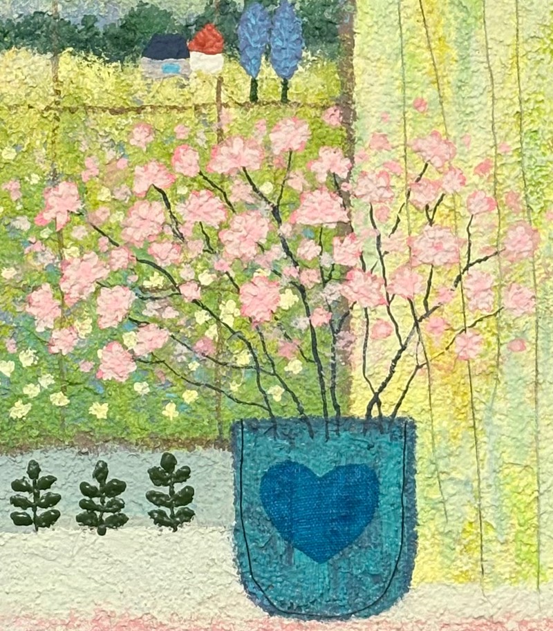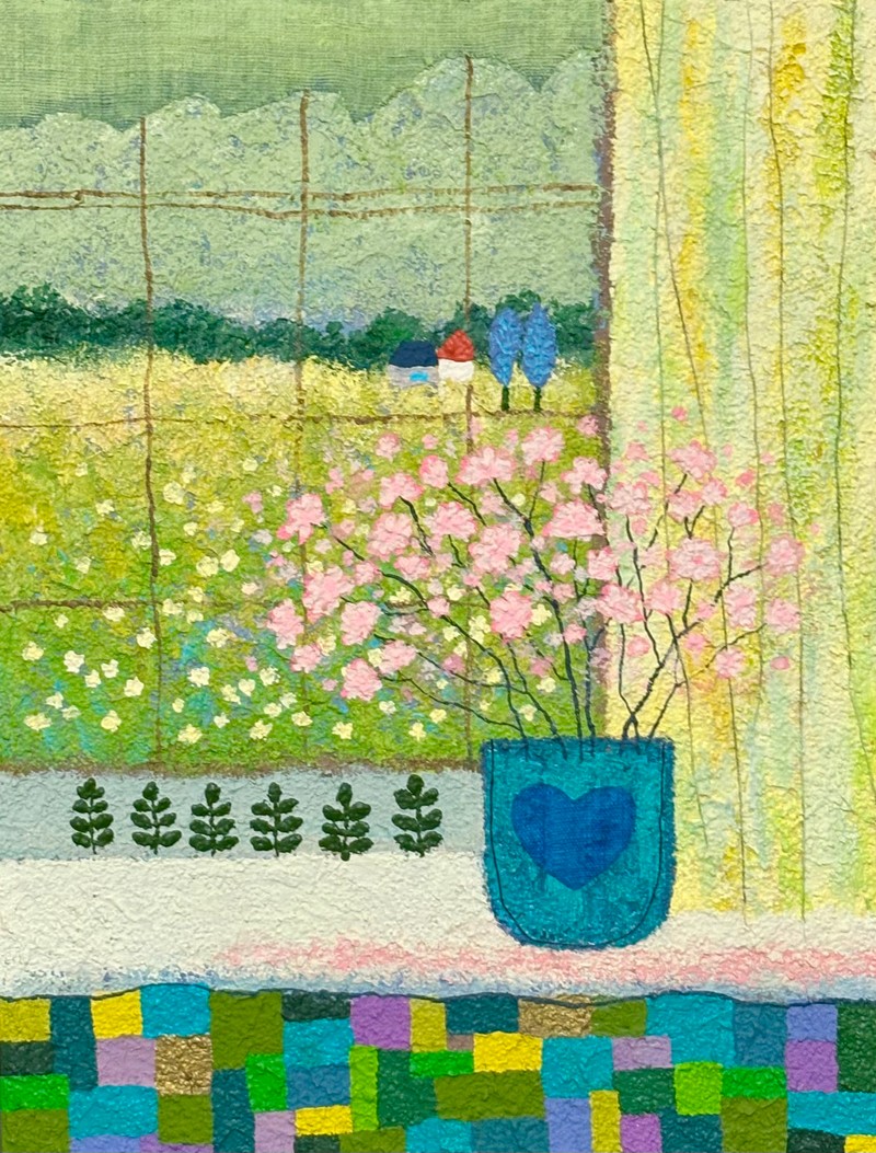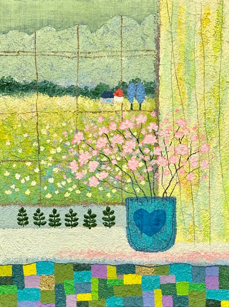 작품설명 진정한 휴식의 기쁨은 열심히 행한 사람에게 주어짐을 체감한 날에서부터 작업이 시작되었다. 산을 오르는 행위는 목표를 향한 실천을 비유하며, 고된 과정을 지나 정상에 도달했을 때 비로소 마주하는 풍경 속에서 힘듦이 씻겨내려가고 휴식의 본질인 달콤함을 느낄 수 있다. 그 여정 속에서 발견되는 작은 기쁨과 성취는 ‘새싹’이라는 형태로 산 곳곳에 담겨 있다. 목표에 도달한 순간, 더 큰 보상을 쥐려 하기보다, 스스로가 새싹이 되어 뿌듯함을 온전히 누리는 모습으로 표현했다. 노력의 시간은 구름이 되어 보상의 비를 내리고, 그것은 다시 새싹의 자양분이 될 것이다. 이 작업을 통해, 묵묵히 자신의 길을 걷고 있는 모든 이들에게 조용한 응원을 전하고자 한다. ㅡ 📮Artist 아오