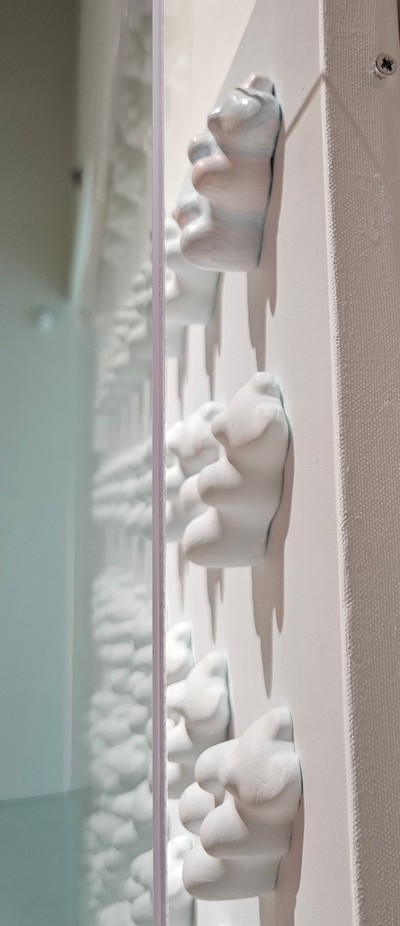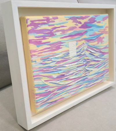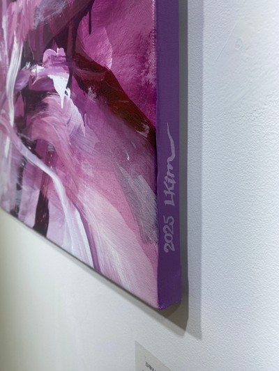 "켜켜이"는 우리가 인지하지 못하는 순간에도 자연이 어떻게 차곡차곡 쌓여가는지를 탐구하는 작품입니다. 이 작품은 산과 언덕의 시간을 추상적으로 표현함으로써, 자연의 지속적인 변화와 우리의 인식 사이의 간극을 조명하려고 하였습니다. 작품의 가장 두드러진 포인트인 형광 분홍색은 자연에서 느껴지는 순간적인 아름다움과, 그 전환의 강조를 위해 선택되었습니다. 이 색은 에너지를 상징하며, 한순간의 순간성을 표현하는 동시에, 자연의 시간 축에서의 지속성을 나타냅니다. 형광 색조는 우리가 흔히 지나치기 쉬운 것들을 환기시키며, 그 속에서 숨어 있는 자연의 경이로움을 드러냅니다. 작품의 형태는 직선적이기보다는 유동적이고 다층적인 요소들로 구성되어 있습니다. 산과 언덕을 추상화한 형태는 서로 겹쳐지고 쌓이면서 시각적으로 깊이를 형성합니다. 이는 자연의 이질적이지만 연속적인 시간의 흐름을 상징하며, 관객이 보이지 않는 공간의 깊이를 느낄 수 있게 돕습니다. "켜켜이"는 단순한 자연의 풍경을 넘어, 우리가 의식하지 못하는 순간에도 자연은 끊임없이 변화하고 그 과정에서 쌓여간다는 메시지를 전달하고자 합니다. 산과 언덕의 시간은 대개 우리가 주목하지 않았던 사이에 저절로 쌓이고, 그것이 가져오는 작은 변화나 미세한 아름다움에 대한 감각을 일깨우는 것이 이 작품의 표현함과 동시에, 이를 통해 관객이 자연과의 관계를 재고할 수 있는 기회를 제공하고자 합니다. 이 작품을 통해 우리는 자연의 변화를 더 깊이 느끼고, 스쳐 지나가는 순간들을 소중히 여기게 되는 계기를 만들고 싶습니다.