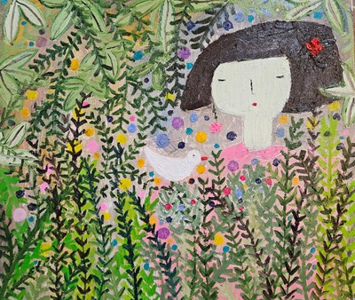 斐몽巳몽 사이즈 60*108 순지에 혼합재료 斐몽巳몽은 꿈과 현실이 교차하는 경계를 주제로 삼아, 화려함과 신비로움이 어우러진 몽환적인 세계를 표현한 작품입니다. 작품의 중심에 있는 뱀은 생명력과 재생, 지혜를 상징하며, 화려한 색채와 정교한 문양으로 역동적인 에너지를 담아냈습니다. 뱀 뒤로 길게 이어지는 노리개는 한국 전통 장식물로서 연결과 조화를 나타냅니다. 각각의 문양과 색상은 인간의 다양한 꿈과 소망을 상징하며, 뱀과 함께 하나의 유기적인 흐름을 이루고 있습니다. 배경의 둥근 원은 우주의 순환과 조화를, 꽃과 금빛은 생명과 풍요로움을 나타냅니다. 이러한 요소들이 어우러져 작품은 전통 민화의 상징적 의미를 현대적으로 재해석하며, 과거와 현재, 자연과 인간의 경계를 초월한 새로운 시각을 제시합니다. 출품 의도: 2025년 뱀의 해를 맞아 제작된 이 작품은 전통적인 한국적 요소인 뱀과 노리개를 중심으로 꿈과 현실의 조화를 탐구합니다. 관람자로 하여금 몽환적인 세계를 여행하도록 초대하며, 생명과 조화, 그리고 삶의 경이로움을 재발견하는 경험을 선사하고자 합니다. 斐몽巳몽 (Bimong Simong) explores the boundary between dreams and reality, presenting a harmonious yet surreal world filled with vibrancy and symbolism. At the center of the work, the snake symbolizes life, regeneration, and wisdom. Its intricate patterns and vivid colors imbue it with dynamic energy. Behind the snake, the norigae—a traditional Korean ornament—extends gracefully, signifying connection and harmony. Each motif and color within the norigae represents human desires and aspirations, forming a seamless flow with the snake. The circular background symbolizes the cycles of the universe, while the flowers and golden accents convey life, abundance, and beauty. These elements blend together to reinterpret traditional Korean minhwa symbolism through a contemporary lens, transcending the boundaries of past and present, nature and humanity. Exhibition Intent: Created to celebrate the Year of the Snake in 2025, this work reimagines traditional Korean symbols—the snake and the norigae—to explore the harmony between dreams and reality. The piece invites viewers to embark on a journey into a surreal and dreamlike world, rediscovering life’s wonder, vitality, and balance. #세화전 #뱀띠 #뱀그림 #동양화 #민화 #한국화