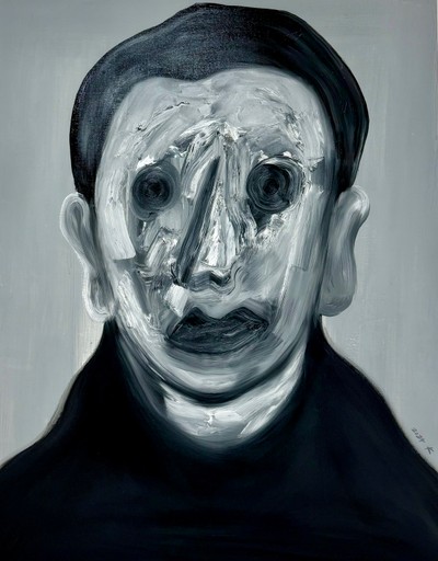 Kitch Hevils: Profile: 不規則 2 2025.01.03 Mixed media on canvas 불규칙으로 박힌 Hevil의 얼굴에서 난 사랑을 보았다. 완벽한 나를 좋아해주는 것이 사랑이 아니라 생각한다. 사랑이란 때론 가운데에 있지도 않고 약간의 일그러짐도 있지만 그런 나를 사랑해주는 것 난 그것이 사랑이라 항상 생각한다. 규칙성따윈 없이 불규칙한게 인간이고 그것에 우리는 타인에게 끌리는 이유이기에.