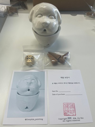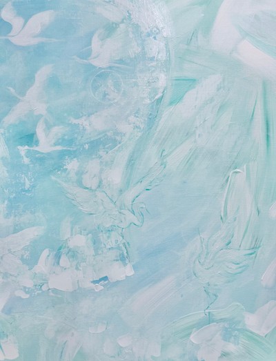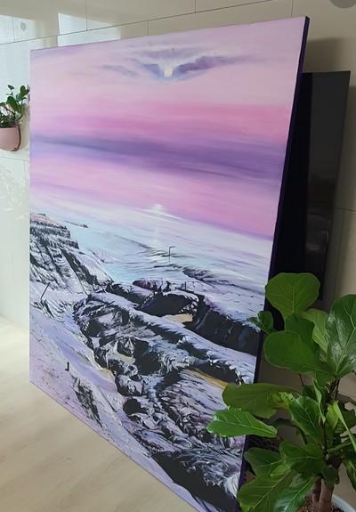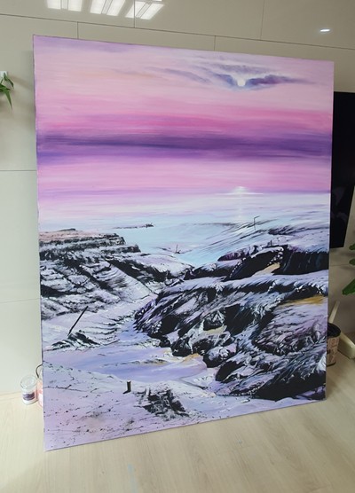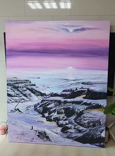 💧 고요한 깊이, 에폭시 레진, 45*65*4(cm), 2024 💧 코발트 빛의 짙은 블루가 캔버스를 화면을 가득 채우며 번져 나가는 모습을 보여준다. 그 중앙에는 매우 진한 블루의 파편과 가루들이 퍼져나가고 있어, 깊고 고요한 바다의 깊이를 상징한다. 푸른 빛의 여러 층이 조화를 이루며, 그 속에서 느껴지는 고요함과 깊이는 마치 마음의 안정과 탐구의 과정을 시각적으로 표현한 듯하다. ‘고요한 깊이’는 푸른색의 깊이와 안정감을 통해 관람자에게 내면의 평화를 불러일으킨다. 강렬한 색채와 형태는 마치 내면의 혼란 속에서도 찾은 고요함을 상징하며, 관람자에게 깊은 사색과 내면의 탐구를 유도한다. “고요한 깊이”는 혼란과 동시에 내면의 평화를 찾는 과정을 담아내며, 관람자로 하여금 내면의 깊은 평온을 탐험하도록 인도한다.