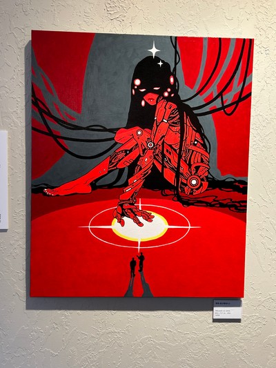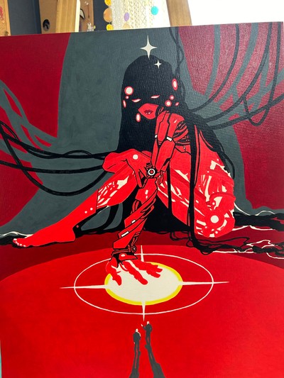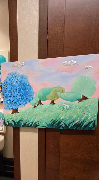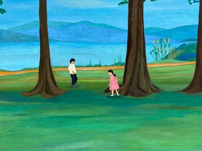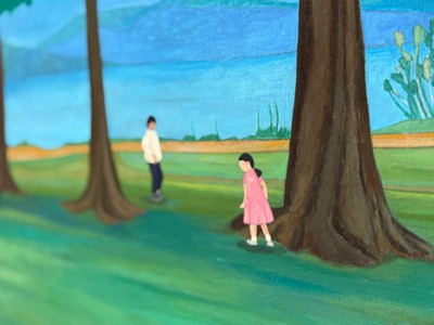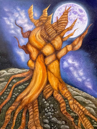 오래된 나무는 시간이 깊어짐에 따라 신령(神靈) 해진다. 세상에서 가장 오래된 나무 ‘므두셀라’. 므두셀라의 오랜 시간 중 어떤 날의 어느 밤. 자신은 땅에 박혀 한자리에서 벗어날 수 없는, 거꾸로 매달린 자였다는 것을 인식하게 된다. 그의 광활했던 시간 속에서 드디어 공간을 인식하게 된 것. 그의 장수는 축복이 아니었으며, 그저 갇힌 자가 되었다. 그렇게 오랜 시간을 내면에 머무른 끝에 신이 되어가는 과정에 있는 므두셀라의 이야기를 그려본다. 신이 되어가는 과정에 있는 자신을 인식(perpective) 하게 되는 날을 신비로운 은하수 표현으로, 대지의 어머니와 양육을 나타내는 하얀 달은 공간 그 자체로의 의미를 오롯이 담고 있어 뒤쪽에 크게 배치하였다. 모델링 페이스트로 나무와 땅의 질감을 표현해 줌으로써 굳건히 살아있는 나무의 생명력을 더 극대화해주었다.