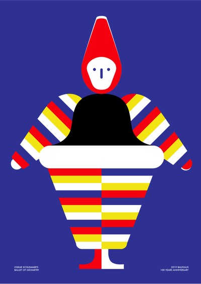 그래피카쇼에서 새롭게 선보이는 Ballet of Geometry 시리즈입니다. 바우하우스에서 연극 공방을 맡았던 오스카 슐레이머(Oskar Schlemmer, 1888-1943)가선보였던 유니크한 무대의상을 그래픽으로 옮겼습니다. 오스카 슐레이머는 바우하우스에서 조형 마이스터로 무대 공방을 운영(1921-1929)하며 근대 조형언어 형성의 중심에 있던 바우하우의 명성에 크게 기여한 인물입니다. 슐레이머는 큐비즘을 흡수한 예술가로 모든 자연형태를 기하하적으로 변형하고 의미를 부여하는 추상 양식을 추구했습니다. 화가, 조각가, 무대미술가, 무용수로 다재다능했던 그의 능력이 집약된 작품이 삼화음 발레(Triadic Ballet,1922)입니다. 삼화음 발레는 모든 것이 세 가지로 나뉩니다. 의상은 기초 형태인 구, 육면체, 사각뿔에서 파생되고, 색상 또한 빨강, 파랑, 노랑 3원색에서 출발합니다. 음악과 퍼포먼스의 구성 또한 세 부분으로 나뉩니다. 슐레이머는 무대 공간에서 형태와 색상이 무대 위의 퍼포머에게 끼치는 영향에 주목해 무용수의 움직임을 제한하는 기하학적인 무대의상을 제작했습니다. 이 작품은 퍼포먼스를 무대 공간에 집중하여 형태적으로 접근했다는 점에서 매우 독창적이고 혁신적인 작품으로 현재까지 리메이크되고 있습니다. 그래피카는 'Ballet of Geometry' 시리즈를 통해 슐레이머 삼화음 발레를 소개합니다. 다소 거칠고 투박해 보일 수 있는 기초 도형과 색을 오늘날의 미감에 맞게 해석해 색다른 감성을 전합니다.