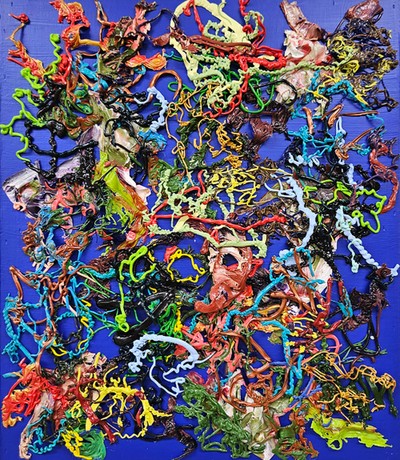 일월(日月)아카시아공작 순지에 분채 50x140cm 60호변형 왕의 권위를 나타내는 궁중회화 일월오봉도의 해와 달을 작가의 시그니처 아카시아공작으로 재해석한 작품