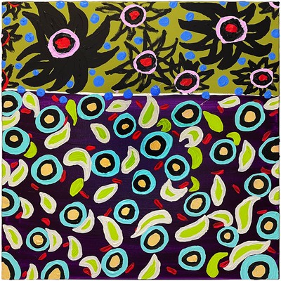< 파자마 파티 > 60.6 x 60.6 cm oil & mixed media on canvas 2024 우화는 인격화한 동식물이나 다른 사물에 빗대 풍자나 교훈의 뜻을 드러내는 이야기를 말한다. 이솝우화의 내면의 시각언어 같은 화면들은 다양한 동물 캐릭터와 주변의 상황들을 상징화시키며 '우화적인 내러티브'를 구성한다. 신미소의 작품들은 개인의 심리적인 지형을 특징으로 삼아, 제각기 다른 표정으로 자기 내면을 드러낸다. 익살스러움과 해학을 지닌 풍자적인 시각 언어는 인간의 허위적인 태도를 번뜩이는 재치로서 비판하기보다, 귀엽고 아기자기한 관계 속에서 '모든 것을 용서하고 사랑으로 회귀'시키는 에너지를 발휘한다. 신미소의 작품들은 이솝우화와 같이 자신의 감정을 이미지로 차용하여 그 속에서 일어나는 해프닝들을 익살스럽게 표현하고, 자신의 삶을 치유와 행복으로 전환하는 우화적인 시각해석을 강조한다. -안현정 평론가 평론 中