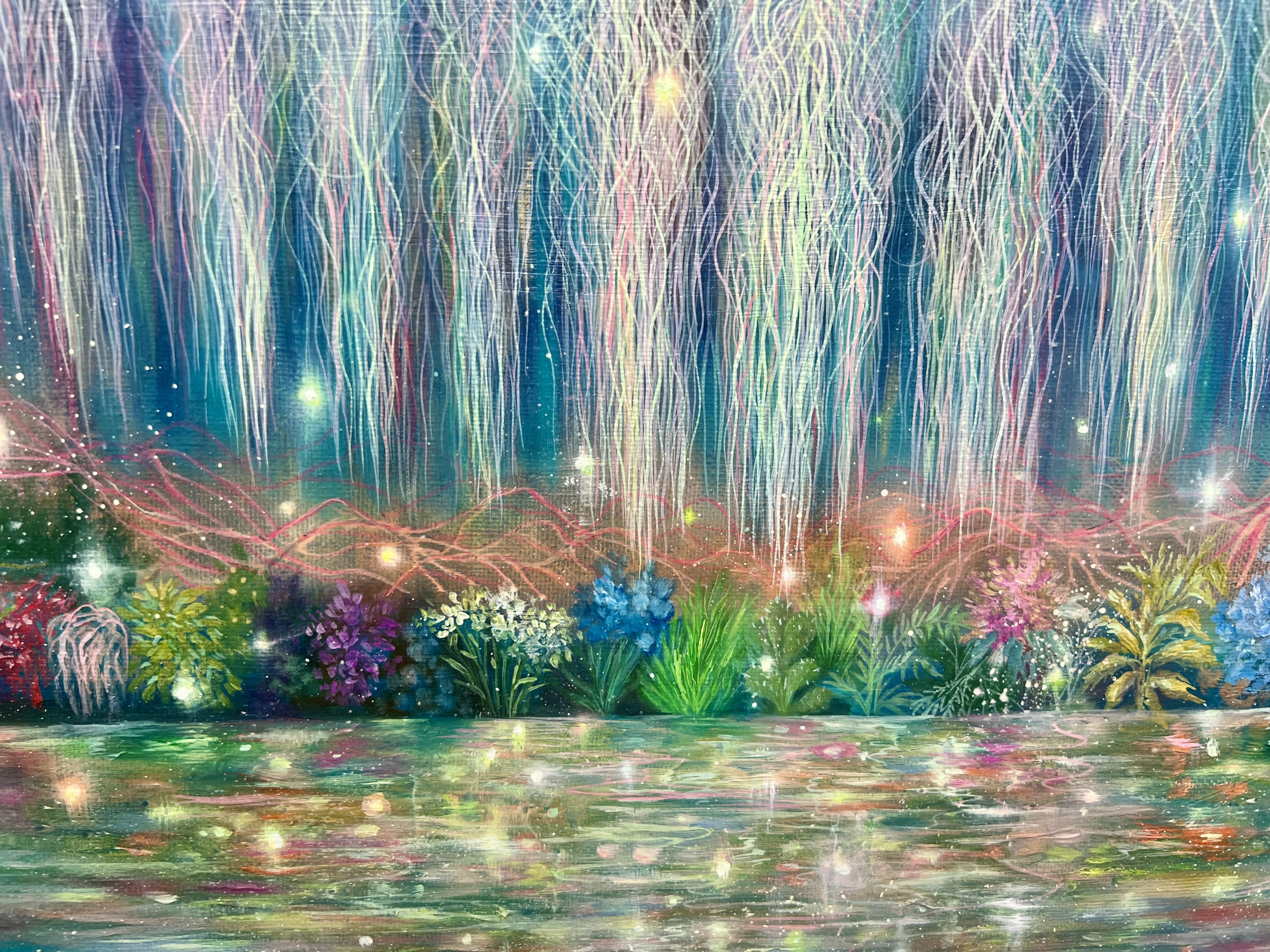 이유지 작가는 상실과 치유, 염원과 해방을 주제로 작업하는 회화 작가로, 의례적 상징과 신화적 상상력을 바탕으로 빛과 선, 이상 형상을 결합해 영혼의 쉼터이자 염원의 공간을 시각화한다.