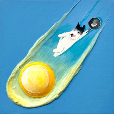-STEPPER's Note! '발길 닿는 곳으로 가는 곳에 무엇이 펼쳐질지 알 수 없지만 나에게 조금은 따뜻하고 평화로운 곳이길.'매일이 도전 같을 현대인들에게 새로운 도전이 너무 무겁지 않았으면 하는 소망은 담은 작업. 작업 속의 강아지가 디깅(digging)을 하는 행위는 원하는 것을 향한 욕구 표현으로, 행복을 추구하는 모습을 시각적으로 보여주기 위한 장치이다. 흐르는 텍스처로 표현된 작업의 마티에르는 달걀후라이의 부드러운 질감을 형상화한 것으로 우리가 경험하게 될 세상이 조금 따뜻하고 부드러웠으면 좋겠다는 메시지를 담고 있다.작업물에 자주 등장하는 강아지들은 일상을 방해(혹은 위로)하는 트리거적 캐릭터로 다양한 상황에서 긍정의 메세지를 전하는 매개체 역할을 한다.