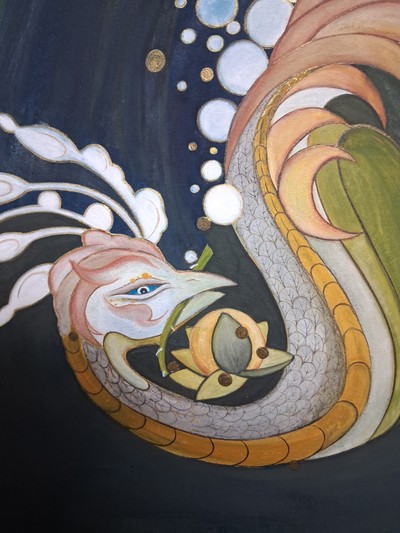 20년경력의 주지스님께서 기도정진하며 그린 봉황도 입니다. 부귀공명을 상징하며 밝은 미래를 황금빛 으로 표현하였습니다.