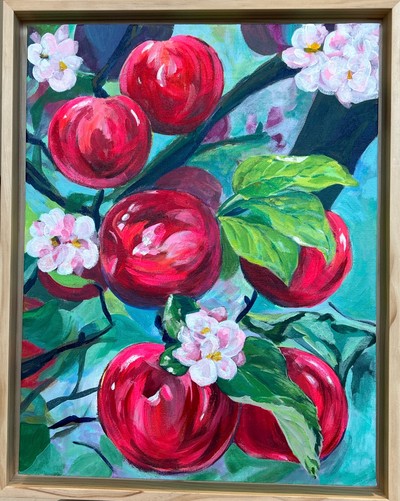 작품명: Charming 유혹은 언제나 조용히 다가온다. 빛나는 색, 탐스러운 형태, 부드러운 곡선으로 그 모든 것이 말을 걸지 않아도 우리 안의 감각을 자극한다. "Charming" 은 그러한 유혹의 순간을 시각적으로 포착한 작업이다. 화면 가득히 펼쳐진 붉은 사과들은 단순한 과일이 아니라, 욕망과 호기심, 그리고 감춰진 감정의 상징한다 사과 사이사이 핀 꽃들과 대비되는 배경의 색조는 이 유혹이 지닌 이중성을암시한다. 달콤하면서도 어딘가 불안한, 아름답지만 거부할 수 없는 그 감정. 이 작품은 보는 이로 하여금 스스로에게 질문하게한다. 우리는 어떤 유혹 앞에서 멈춰서게 되는가, 또는 기꺼이 그 유혹 속으로 걸어 들어가는가