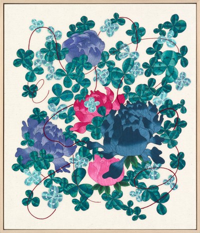 작약 위를 흐르는 하나의 선은, 내 삶을 지탱해온 핏줄이자 감정의 흐름입니다. 그 선 위에, 이제는 곁에 없는 세 마리의 반려토끼를 조용히 꿰매어 넣었습니다. 20년 가까이 함께했던 그 시간은 사랑이라는 말로도 다 설명되지 않는 내 인생의 일부였습니다. 세 마리의 토끼...더보기