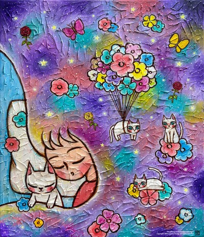 이 작품은 꿈이라는 주제를 중심으로, 사랑과 연결, 위로의 감정을 꽃과 동물, 인물로 표현하고자 했다. 파스텔톤의 보라, 분홍, 블루 색감을 활용하여 몽환적인 분위기를 강조하였고, 별과 꽃, 나비 등 부드럽고 따뜻한 이미지들을 배경에 흩뿌려 꿈속의 환상적인 세계를 형상...더보기