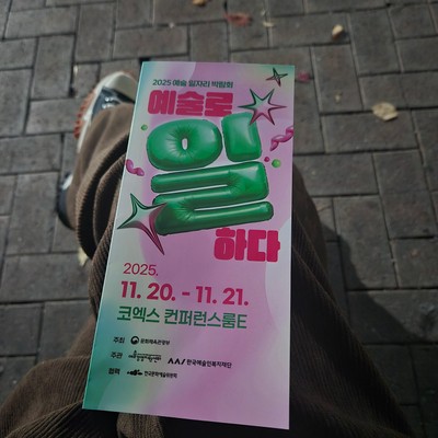 2025 [ 예술인 일자리 박람회 2025.11.10 ~ 20+21일 ] - Coex / 한국예술인복지재단 한국 예술인복지재단에서 진행하는 예술인 해커톤, 예술인 일자리 박람회에 참여하고 왔습니다. 참여 예술인 선정 이후 10일간 함께한 김예원, 우지은, 안조현, 조...더보기