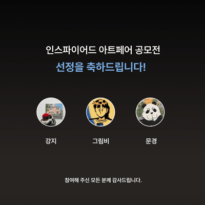 《인스파이어드 아트페어 공모전 선정 작가 발표》 인스파이어드 아트페어 hypeN 부스에 함께할 작가를 발표합니다. 이번 전시에는 강지@kangzi, 그림비@grim_b, 문경@lemonluna 작가가 ...More