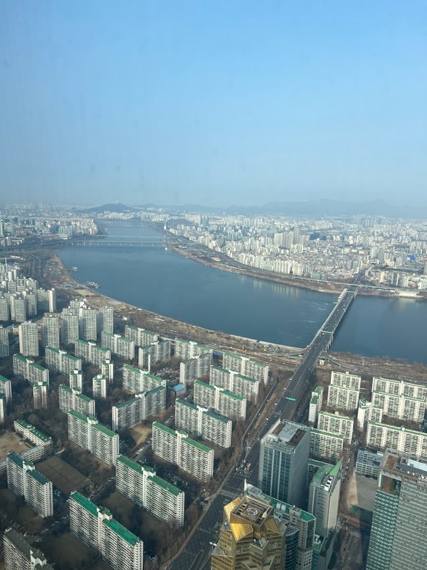 고층에서 내려다 본 서울 잠실의 아파트 풍경.