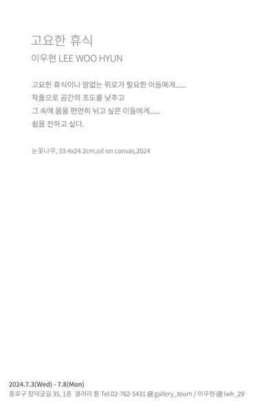 이우현 LEE WOO HYUN 1)전시이름 :고요한 휴식 2) 작가노트 :고요한 휴식이나 말없는 위로가 필요한 이들에게.........More