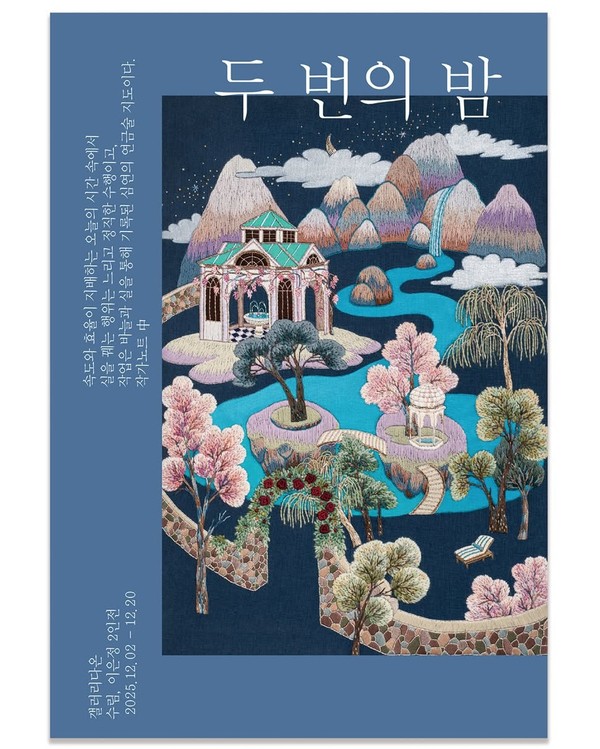전시 소식을 전합니다. 갤러리다온에서 <두 번의 밤> 수림, 이은정 2인전 중입니다. 많은 관심 부탁드립니다☺️🙏🩷 #전시 #자수회화 #이은정작가