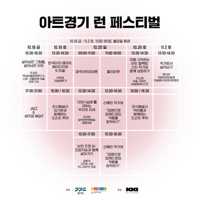 2024년 10월 18일부터 11월 2일까지 경기도•경기문화재단과 함께하는 《아트경기 런 페스티벌》이 갤러리끼 파주에서 개최됩니다. 《아트경기 런 페스티벌》은 2019년부터 2024년까지 아트경기 선정작가 42인과 함께하는 특별한 축제로, 경기도 미술계의 역량...더보기