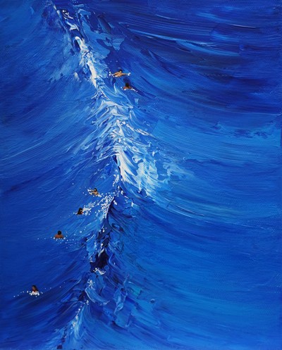 파도를 즐기는 사람들 바다 색감과 모습, 파도의 형태는 다양하다. 파도의 모습을 임파스토 기법을 활용하여 임체감을 표현해 냄. 작품명 : Big wave 사이즈 : 22 x 28 재료 : Acrylic on canvas 🔴 sold out