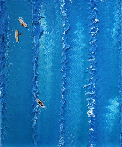 파도 속을 헤엄쳐가는 바위에 부딪혀 부서지는 파도가 아닌 파도 동굴이라고 불리는 베럴(barrel)을 형상화하기 위해 부드러운 질감의 입체감을 표현해 냄. 작품명 : Barrel 사이즈 : 22 x 28 재료 : Acrylic on canvas 🔴 sold out