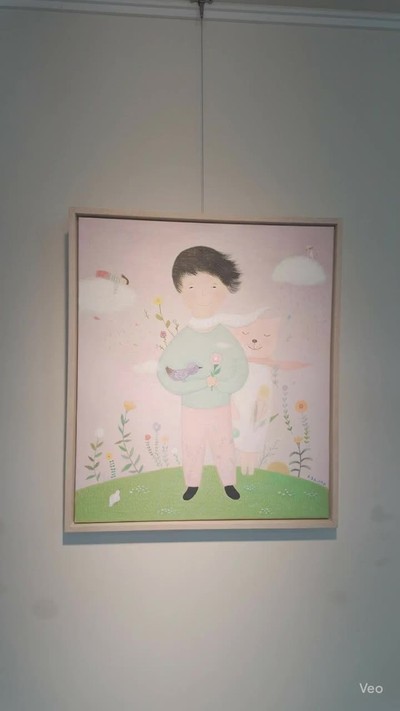 #상월제빵소전시 #토우전시 #그림엽서굿즈 작은 공간 속에 놓인 작품들이 마치 서로에게 속삭이듯 나란히 서 있습니다. 왼쪽 그림 속에는 고요한 눈빛의 사람이, 사랑스러운 분홍 고양이와 하얀 새를 품고 있습니다. 곁에 있다는 것만으로도 마음이 따뜻해지는 존재들처럼요. 오른쪽 그림에는 부드러운 분홍빛 꽃이 활짝 피어나고, 그 아래에는 귀엽게 얼굴을 내민 토끼가 세상을 향해 고개를 들어 올립니다. 꽃과 동물, 그리고 생명의 기운이 한 화면에 어우러져 봄날의 노래처럼 다가옵니다. 그리고 그 사이, 해맑은 얼굴의 인형 같은 아이가 서 있습니다. 구름과 나뭇잎을 품은 옷차림, 잔잔한 미소는 보는 이의 마음을 풀어 주고, 그 발밑의 작은 화분은 ‘함께 살아가는 시간’이라는 메시지를 전해주는 듯합니다. 이 모든 장면은 마치 어린아이의 마음속 풍경 같습니다. 투명한 웃음, 소박한 생명, 그리고 서로를 감싸 안는 온기. 화려하지 않아도, 그 단순함 속에 담긴 진심은 오래도록 마음에 담아지길~~