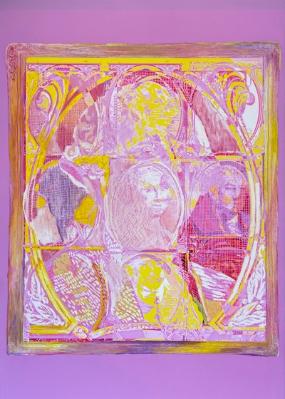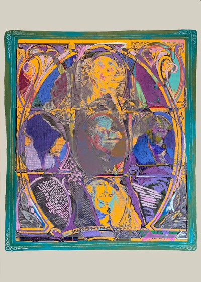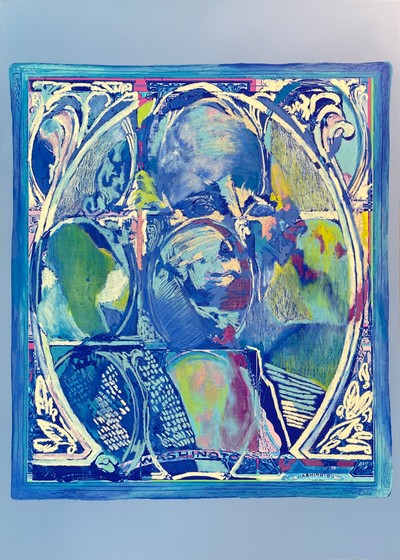 Portrait of Glitched George Washington 2024 나무판넬 위 프린트와 오일파스텔 70x50cm 80만원
