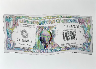 Glitched Dollar issued in March 3rd, 2022 2024 나무판넬 위 프린트와 오일파스텔 50x70cm 80만원