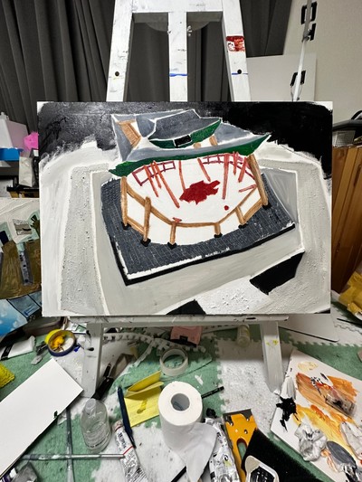 #스타벅스공모전 인정전, 72.2x60.6, Acrylic and oil on 3d canvas ,2024