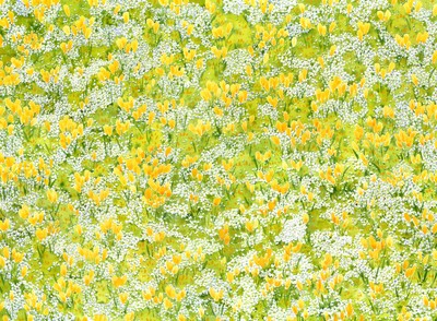 #스타벅스공모전 제목_Wildflowers garden노란 들꽃밭 재질Watercolor on paper 사이즈_ 77cm x 57cm 제작년도_2021년도 작가노트_노란 들꽃들과 하얀 들꽃 그리고 초록잎. 일상에서 만나는 들꽃