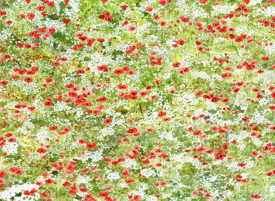 #스타벅스공모전 제목_Wildflowers garden 양귀비 꽃밭 재질_Watercolor on paper 사이즈_ 77cm x 57cm 제작년도_2021년도 작가노트_빨간 양귀비 꽃들과 하얀 들꽃 그리고 초록잎