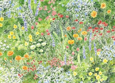 #스타벅스공모전 제목_Wildflowers garden _Giverny 재질_Watercolor on paper 사이즈_78cm x 58cm 제작년도_2024년도 작가노트_지베르니에서 만난 들꽃들로 찬 Wildflowers garden