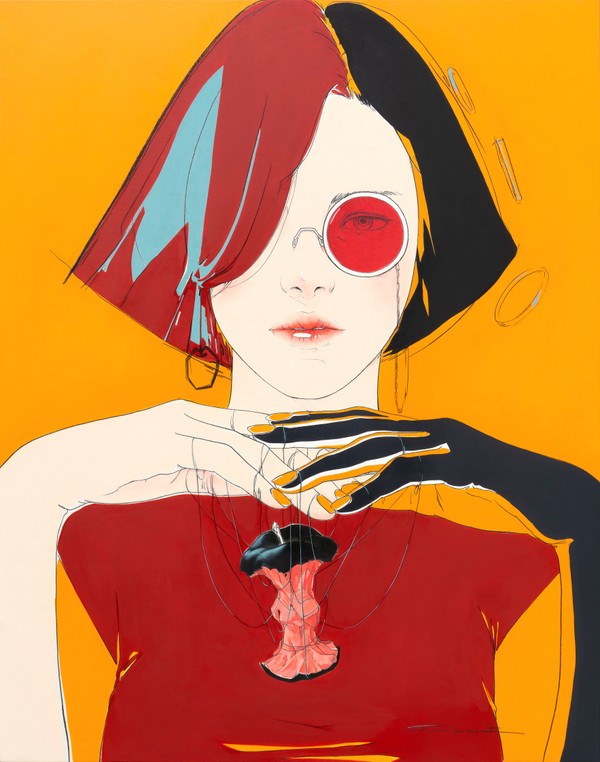 PERSONA 80.5x60.6cm Acrylic, conte on Korean paper(jang-ji) 2021