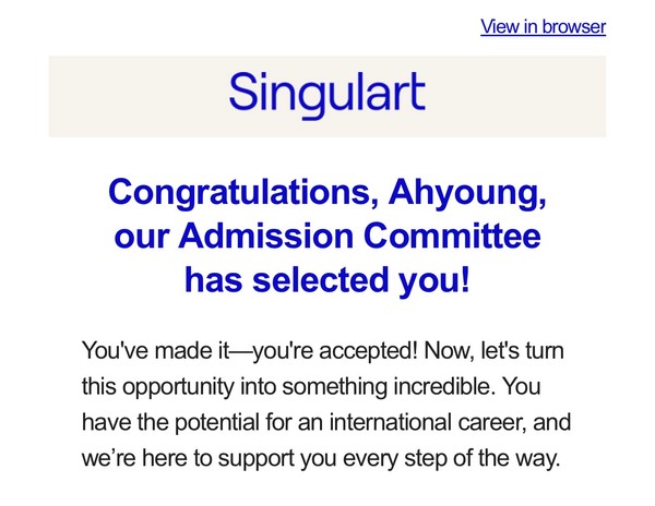프랑스 파리에 기반을 둔, 세계적으로 가장 주목 받고있는 온라인 갤러리중 하나인 Singulart 의 창립자인 Brice Lecompte의 초대로 일반적인 포트폴리오 심사 과정없이 ...더보기