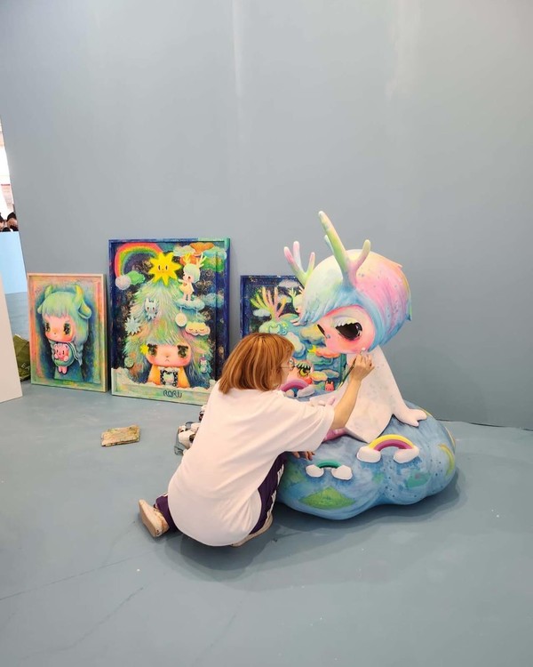 전시 설치 중.. 나의 분신인 아이에게 색을 입히고 있어요. 아이의 뿔은...더보기