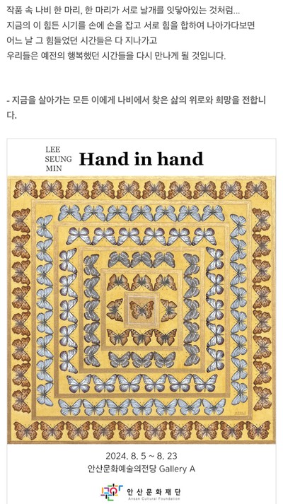 2024 안산문화예술의전당 Gallery A 오늘부터 전시 시작 ^^ 2024. 8. 5(월) ~ 8. 23(금) 10:00 - 18:00