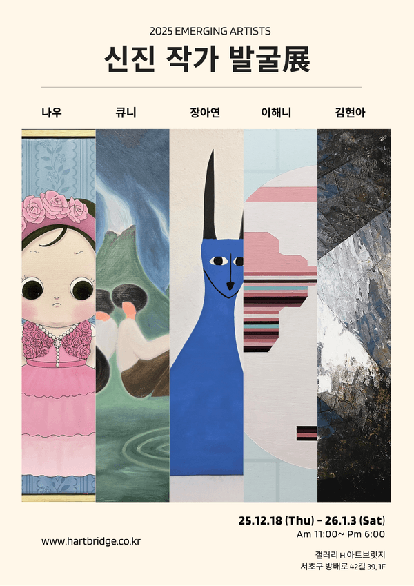 홍익대학교 미술대학 졸업 및 동 미술대학원 회화전공 주제: Time of coexistence 공존은 단순히 함께 존재하는 것을 넘어 서로 이해하고 조화를 이루는 관계입니다. 혼돈속에서 질서로 나아가는 자연의 리듬과 공존의 순간이 직관적으로 전해지기를 바랍니다.